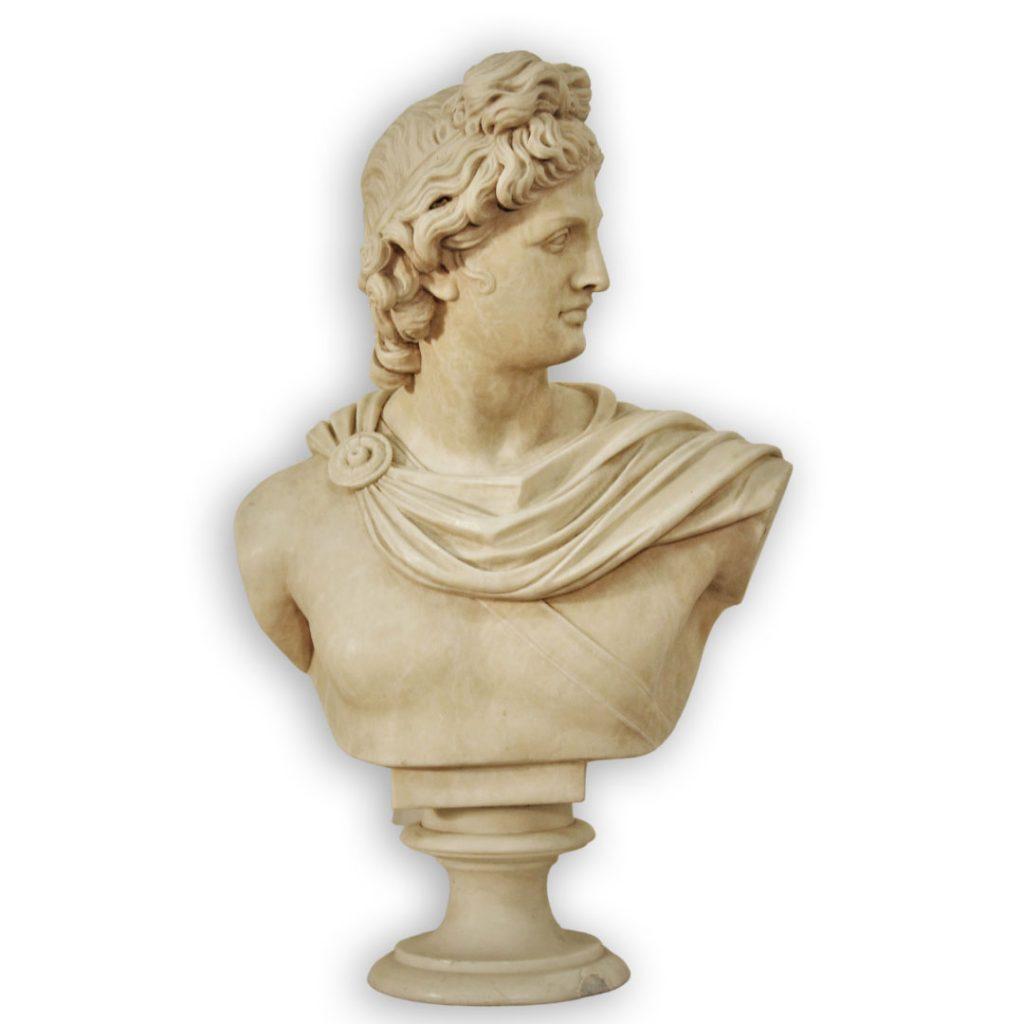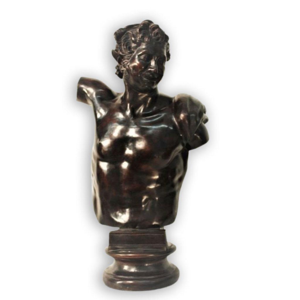 Scultura busto in bronzo patinato, Apollo Belvedere, XX secolo, misure 90 x 60 x 30cm.