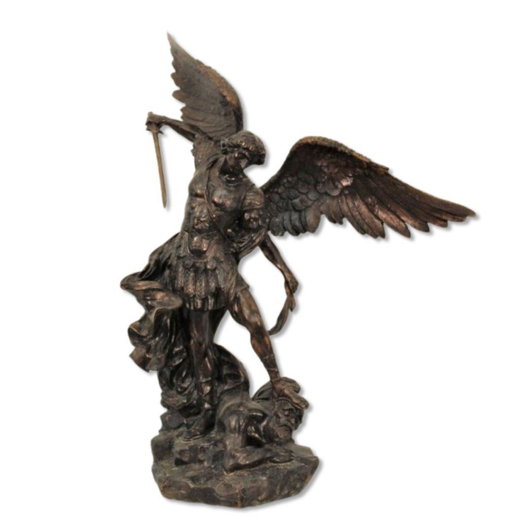Scultura di San Michele in bronzo a cera persa, che sconfigge il drago, XX secolo, misure 76 x 60 x 30 cm.
