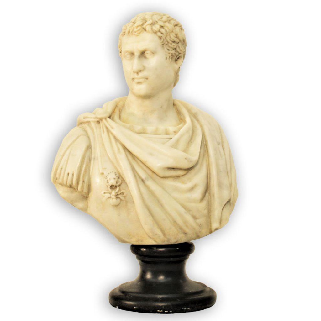 Tiberio Julius Ceasar Augustus bust in white Carrara marble with black marble base, late 19th century, measures 65 x 25 x 45cm.
