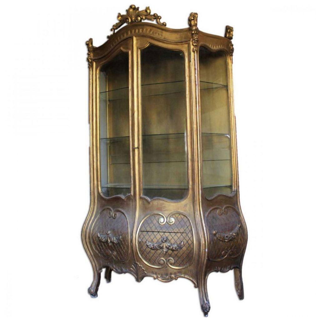 Vetrina dorata periodo primi del novecento con tre ripiani in vetro, misure 200 x 130 x 47cm.