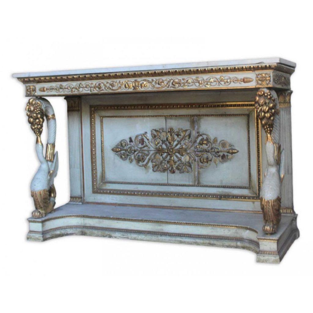 Consolle Impero, Lucca 1780 con uva e cigni, laccata e dorata, piano in marmo bianco, misure 98 x 155 x 55cm.