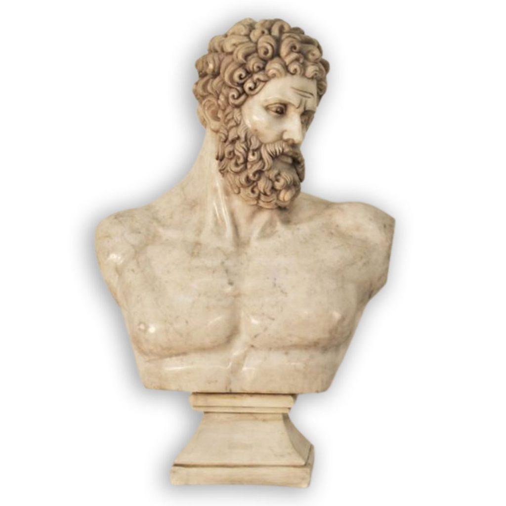 Hercules, from the ancient Heracles, mythological sculpture in carrara marble, first half of the 20th century, measures 70 × 48 × 27 cm