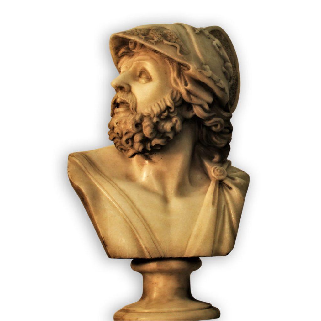 Pericle bust , fascinating marble sculpture in white marble, 20th century, measures 65 x 45 x 25cm.