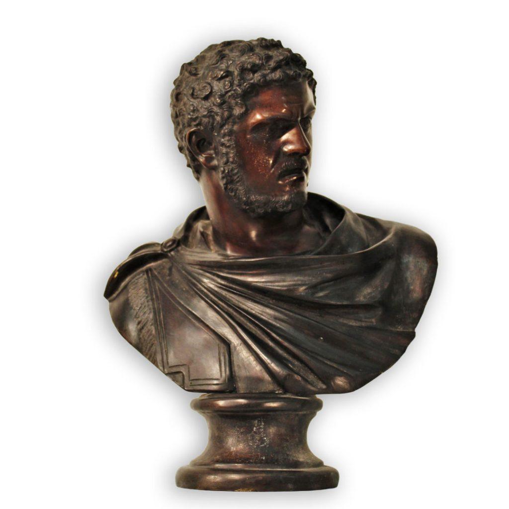 Busto di Caracalla in bronzo patinato, metà del xx secolo, alto 65 cm.