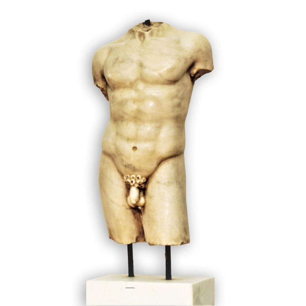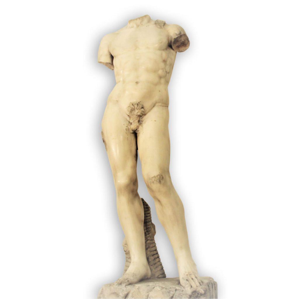 Torso in marmo, nudo maschile con parte inferiore, inizio XX secolo, misure 115 x 45 x 45cm. Venduto