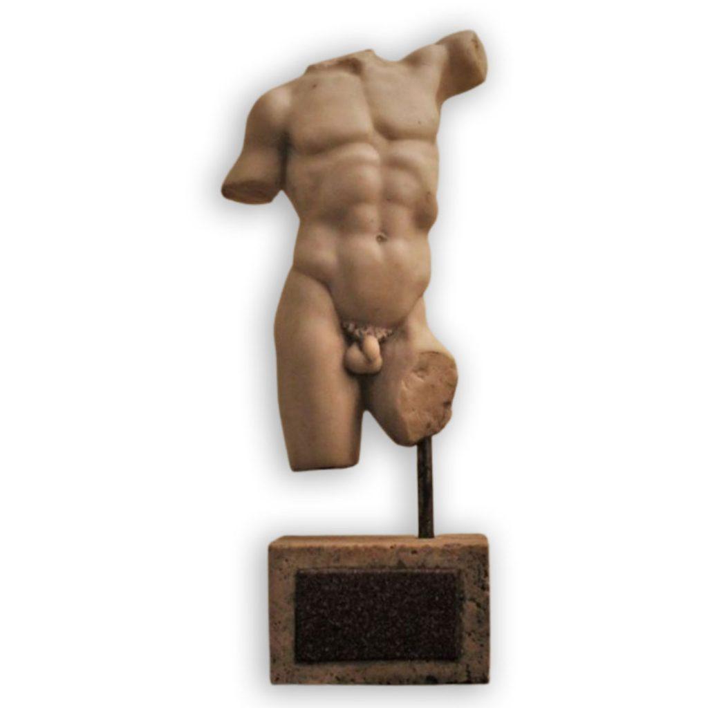 Marble torso, 45 cm high, depicting a Greek warrior or Greek divinity Mars of war, early 20th century, Measures 45 × 14 × 12 cm.