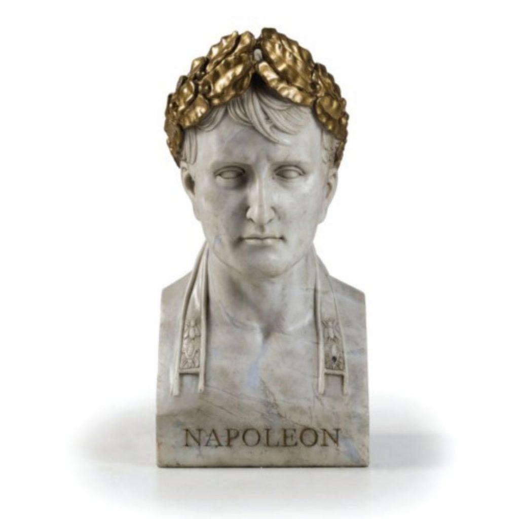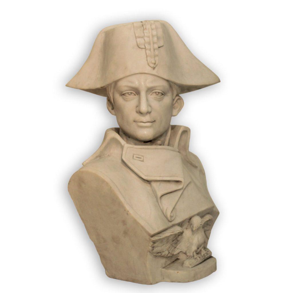 Scultura Napoleone in marmo bianco statuario in divisa 55×38×25 cm.