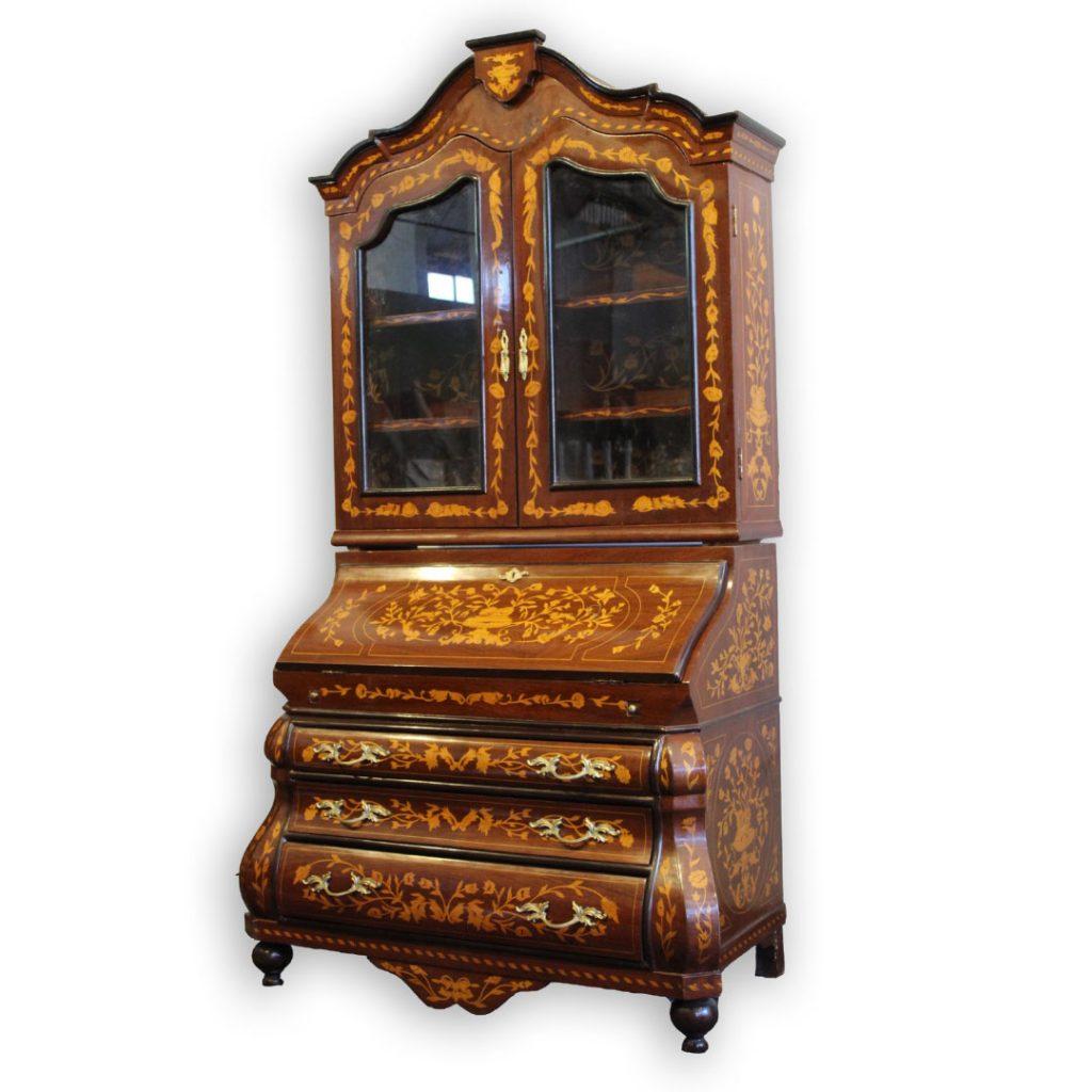Trumò stile olandese, fine XX secolo, in palissandro e intarsio in acero, misure altezza 227cm, 110cm x 60cm.