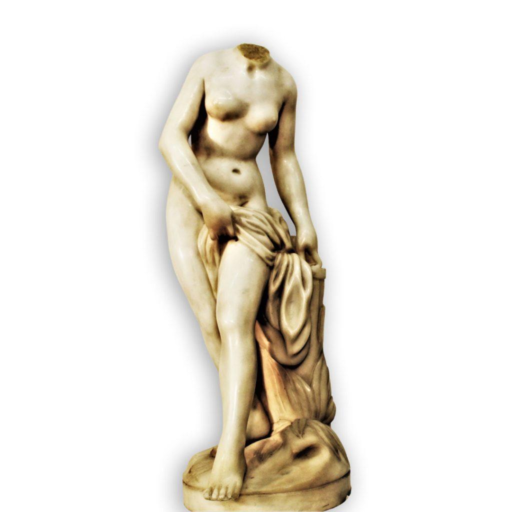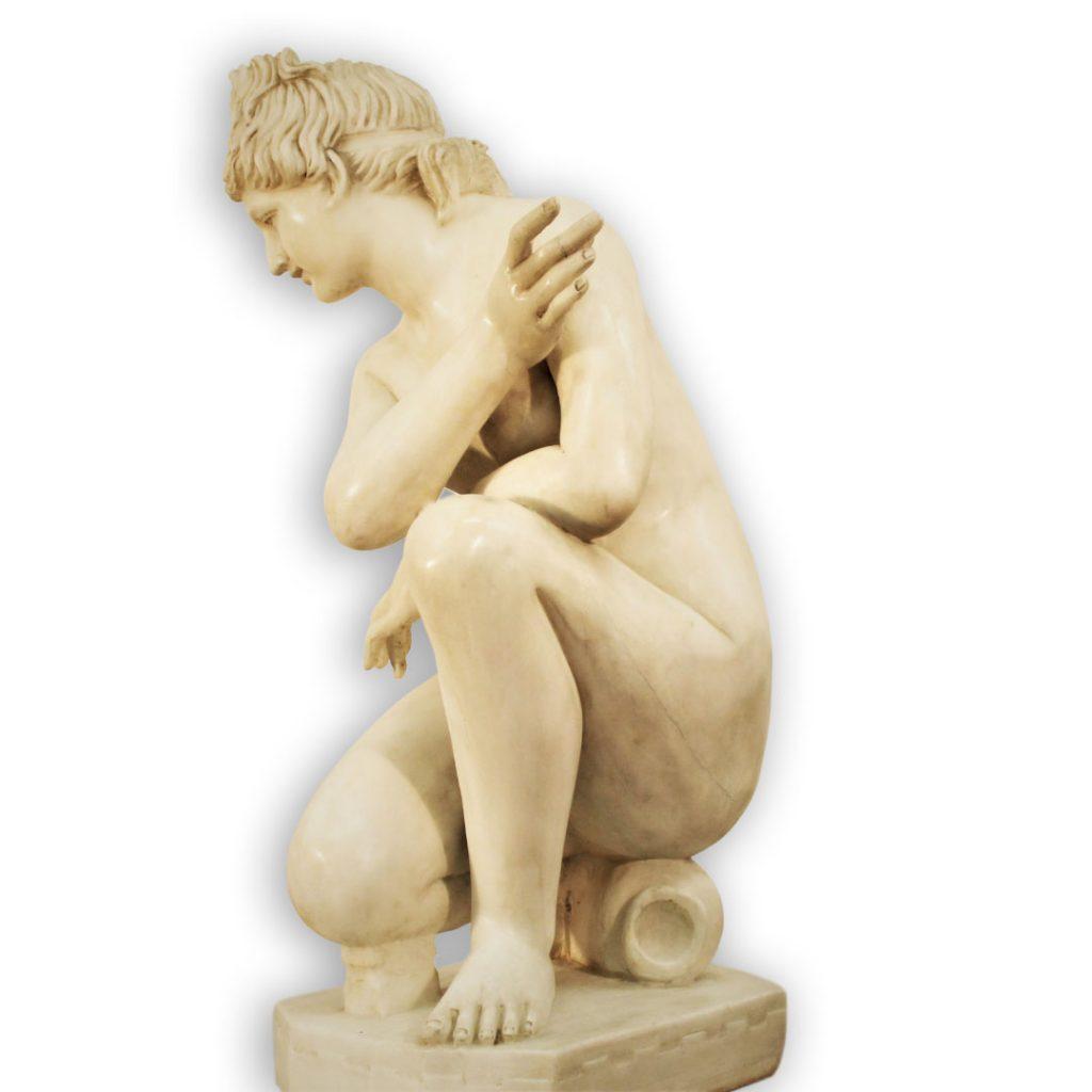Scultura Venere inginocchiata, in marmo bianco, prima meta del xx secolo. misure 93×46×32 cm