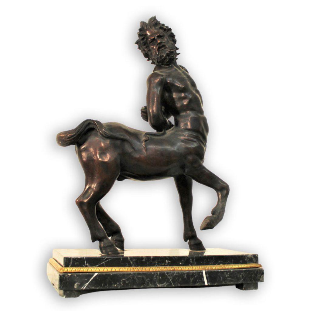 Fantastica scultura di centauro in bronzo a patina, base in marmo nera con modernatura in bronzo dorato, alta qualità di bronzo, misure 67×42×22 cm