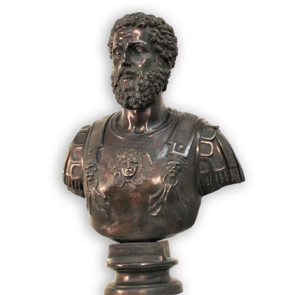 Busto in bronzo Marco Aurelio, stile antico, seconda metà del XX secolo, ottima qualità.